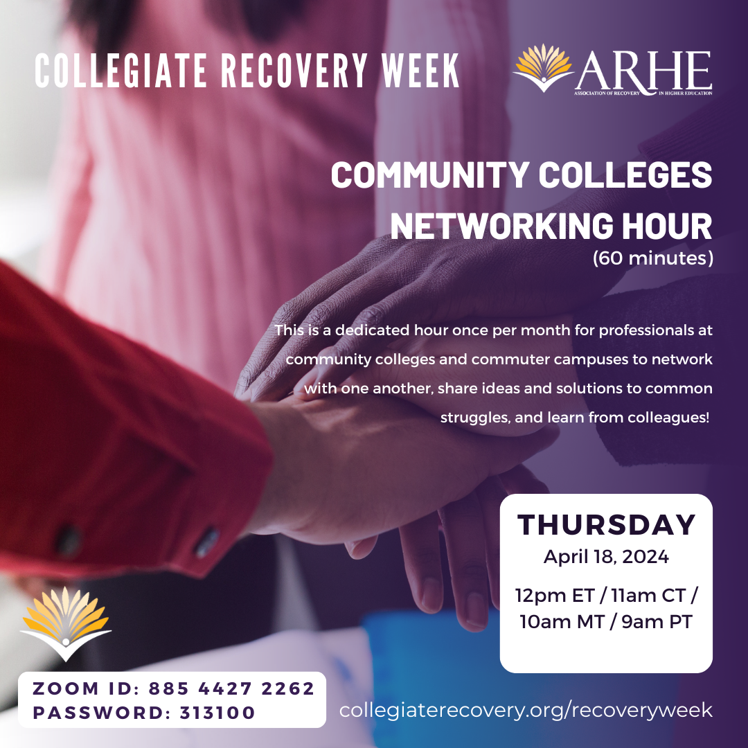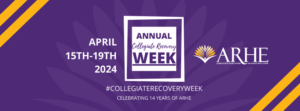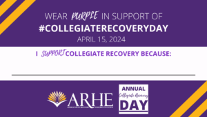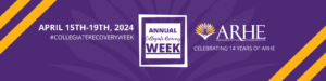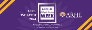 ARHE would like to celebrate Collegiate Recovery Week with everyone and highlight the exciting initiatives that you are doing on your campuses or in your communities! If you would like to share an event with us to promote on our social media accounts leading up to CRW 2024, please fill out this 5-6 minutes form to provide us with all of the details we need to highlight your event! Please complete the form by March 29, 2024 to ensure that your event can be posted on our website, newsletter, and social accounts.