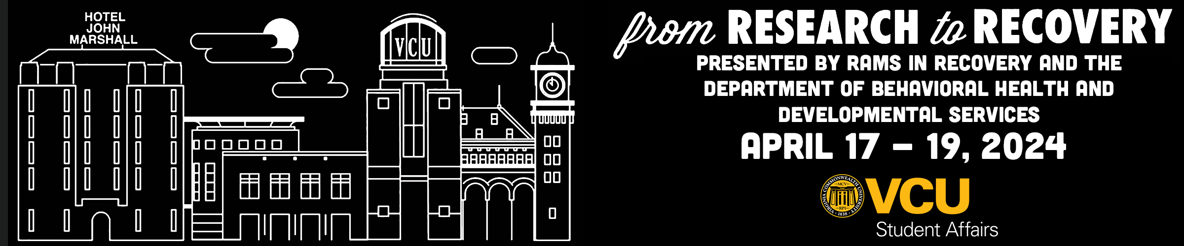 Event Description: VCU Rams in Recovery, The Department of Behavioral Health and Developmental Services, and VCU Rehabilitation Counseling welcome community members, professionals, and researchers to 3 days of engaging talks focused on Substance Use and Young People. Talks will cover the spectrum from Basic Research & Wellness to Prevention, Early Intervention, Treatment and Recovery. CEU credits are available (Register as a professional) through CRCC, and NADAAC. We will be offering up to 18 CEU credits for the Pre-Conference and Conference. This year’s speakers include Dr. Kevin McCauley, Dr. Kaprea Johnson, and Keith Murphy. For the full schedule go to https://r2r2024.sched.com